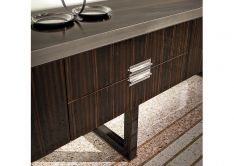 Low cabinet with doors and drawers, legs and frame available in the following types of wood. Drawer fronts covered in leather or cashmere from the range or in the same type of wood as the frame.