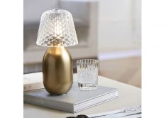 Baby Candy Light becomes now nomadic in 4 iconic colors: glossy Baccarat red, matte bronze, matte white and matte black. Wireless, this nomadic lamp is an elegant and playful solution to light up and decorate indoor tables as well as terrace tables. Rechargeable, its ceramic body is topped with a crystal shade inspired by the Juvisy-cut motif. A button on the top of the lampshade enables to dim the light by a gentle and continuous touch.