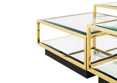 • A bevelled glass-topped coffee table with gold finish beveled mirror black base