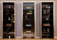 • • SHELVES: bronzed glass METAL OUTLINES: gloss brass plated / gloss chromed / bronzed
